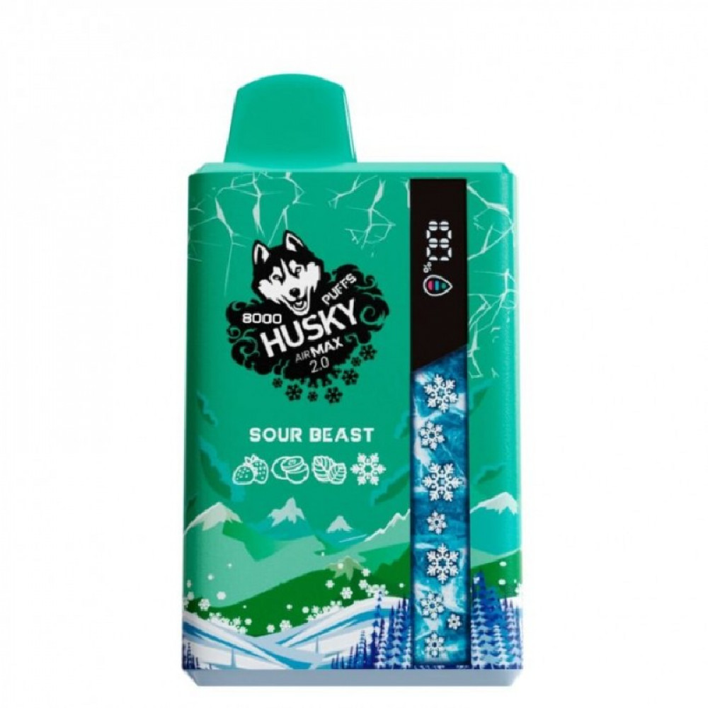 Электронная сигарета Хаски Аир Макс 2.0 8000 Клубника Киви Мята (Husky Airmax 2.0 8000 Sour beast) - купить в Камешково
